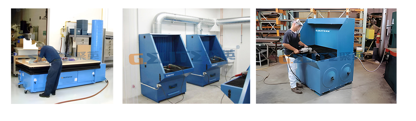 針對木業、衛生潔具、石材等行業,打磨、拋光等工藝產生的煙/粉塵收集治理,根據工件的大小以和操作方式的不同以及現場的特殊需求,收集方式可分為打磨工作臺、墻式除塵器配套房體、固定式/伸縮式打磨工作房、防爆除塵器、濕式除塵器。