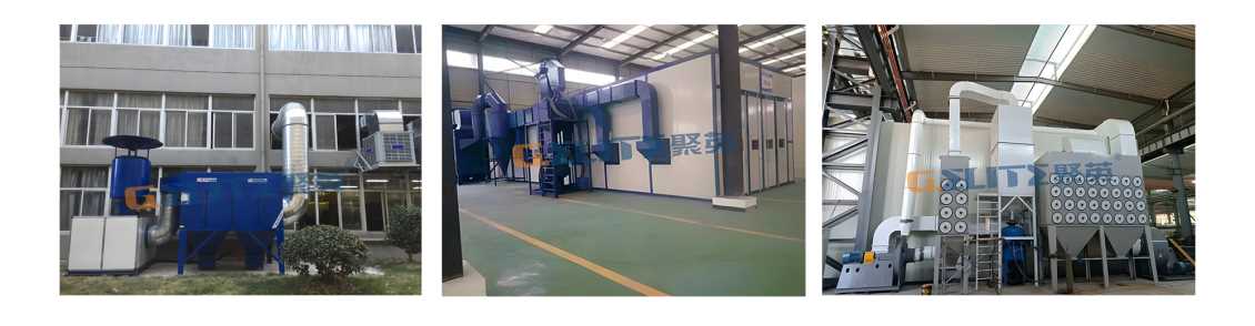 針對拋丸、噴砂等工藝產(chǎn)生的粉塵顆粒收集治理,根據(jù)收集形式不同可分為拋丸機(jī)預(yù)留口收集和噴砂房房體收集,配套旋風(fēng)除塵器+筒式/袋式除塵器。
